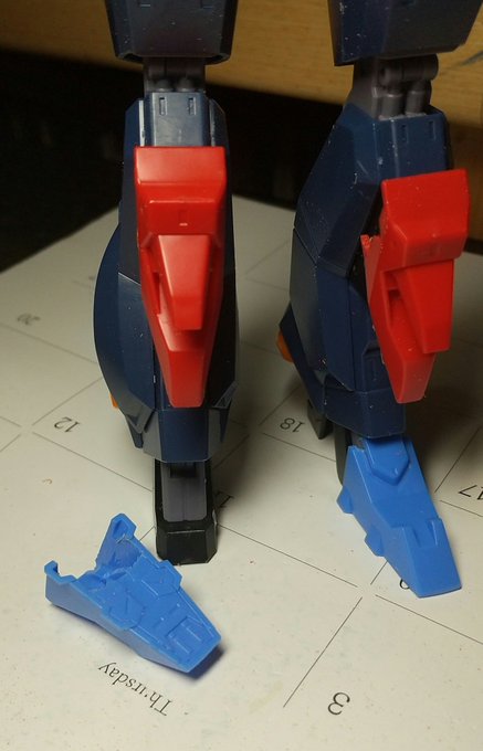 25 341 では実際にパーツ流用製作開始です♪ 脚部部は最初の想定通りほとんど無加工で流用パーツを接着(一部干渉部分は削ってますが)。 肩アーマーはボリュームを求めて2パーツの組み合わせを改めて検討します(=д= ) 23/04/26 21:03