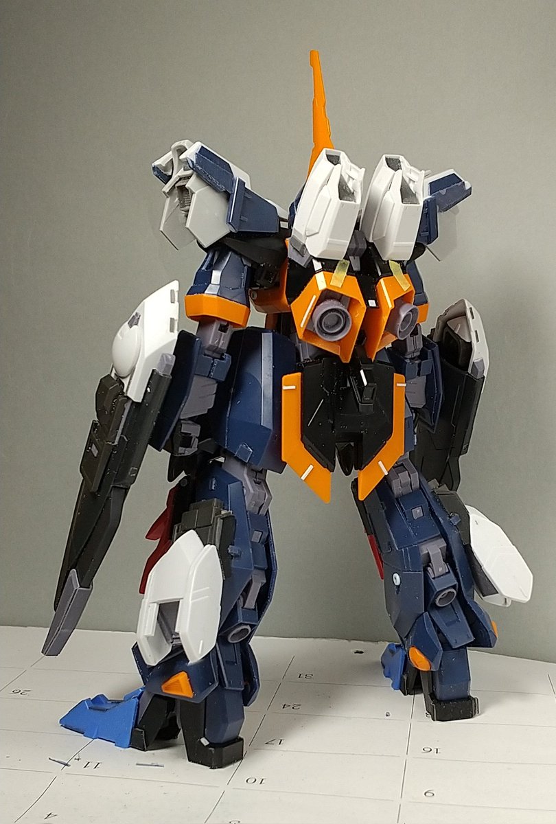 ディテールまで入れ終わりました♪ これにて本体無加工、流用パーツでお手軽にデコレート作戦の工作は終了です(¯д¯)イカガデショウカw あえて肩口や太もも上のバルバトスの特徴の残ったパーツもそのままのディテールで残してますけど、意外と違和感ない感じw 後は塗装です。どうしようかな?(’-’*)