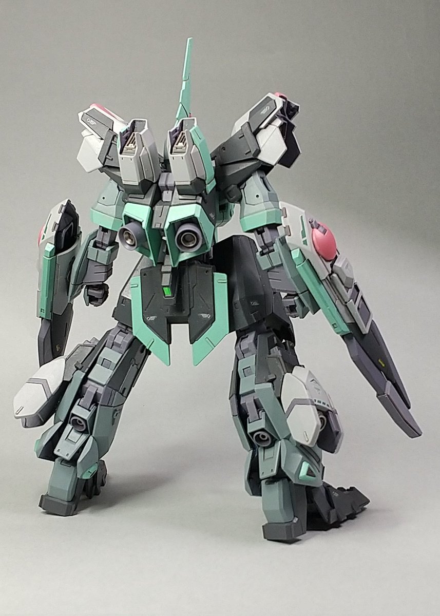 両腕の大型ビームライフルは使用しない時は銃身は反転させて、銃身を広げたらビームを拡散させることが出来るみたいな感じです(*>д<)ノウナイ モウソウ! 結果的には色をMY専用機色リヴェルタカラーとして悩まず塗れたこともあって、予定通りサクッと完成させることが出来ました♪ヽ(*´∀`)ノ