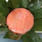 お昼ご飯に〈富山ますのすし〉。「サーモンピンク」とはよく言ったものですアスタキサンチン。