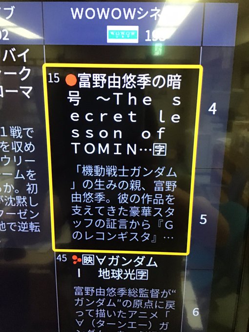 19日金曜日、午前4時15分から〈WOWOWシネマ〉でこんな番組ありまっせ!で、その下にズズイと夜まで、『ターンエー(記号への変換が分からない)』と『Gレコ劇場版』が番組表に並んでおりやす。
