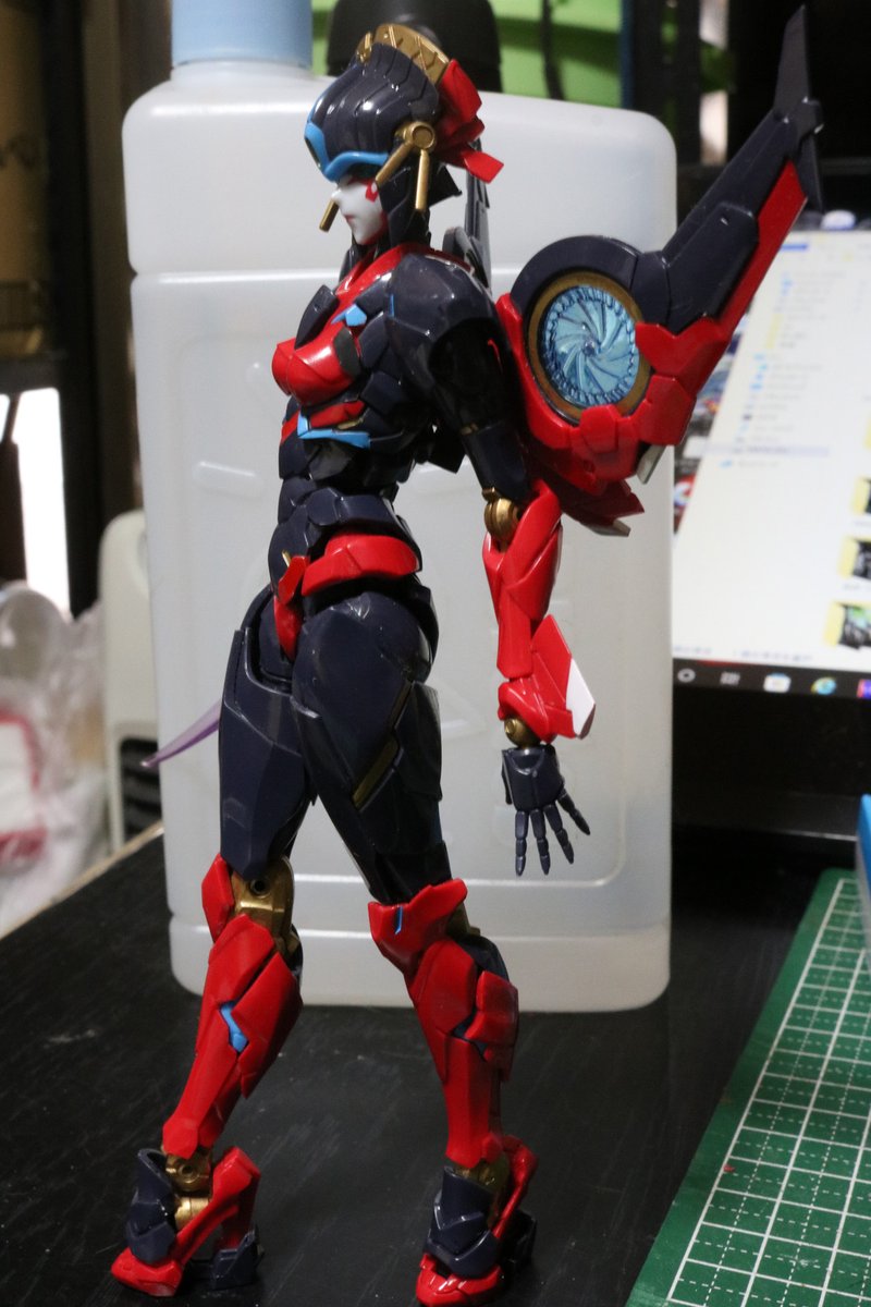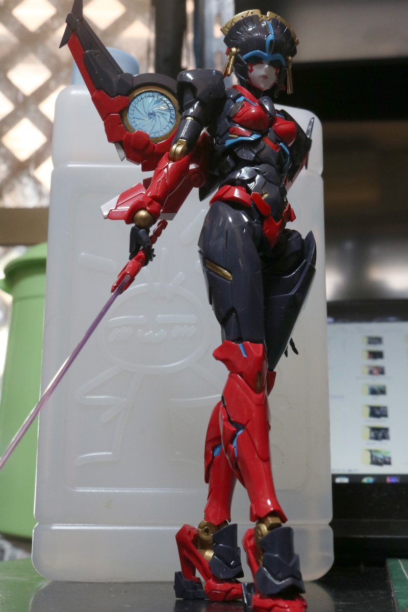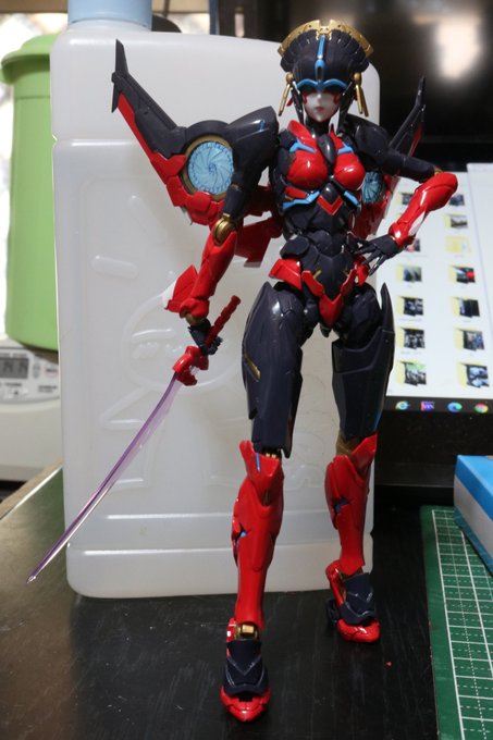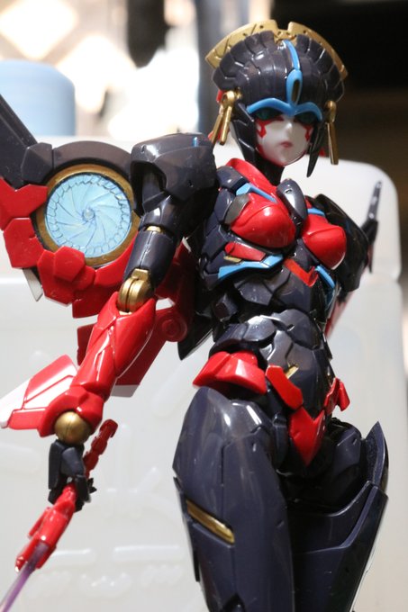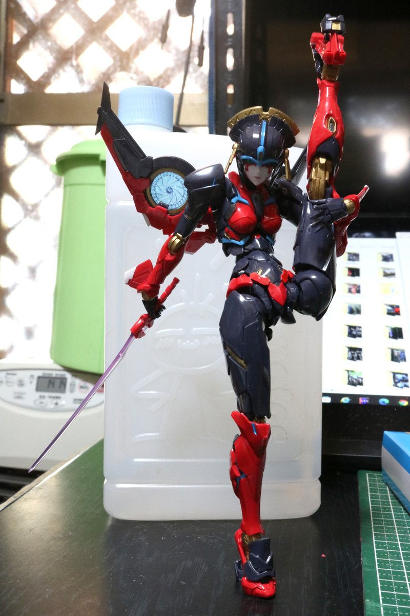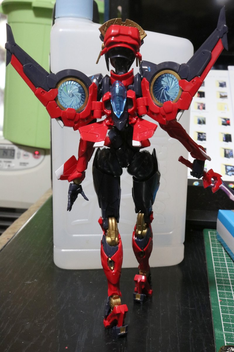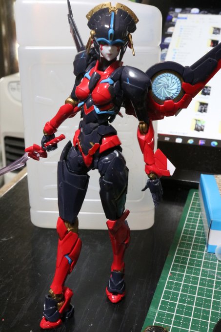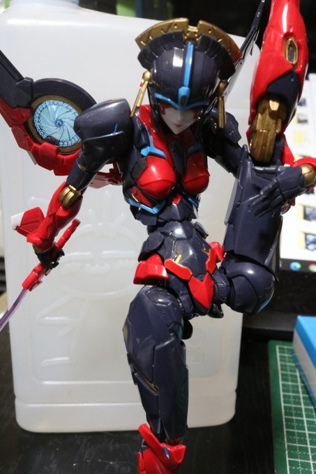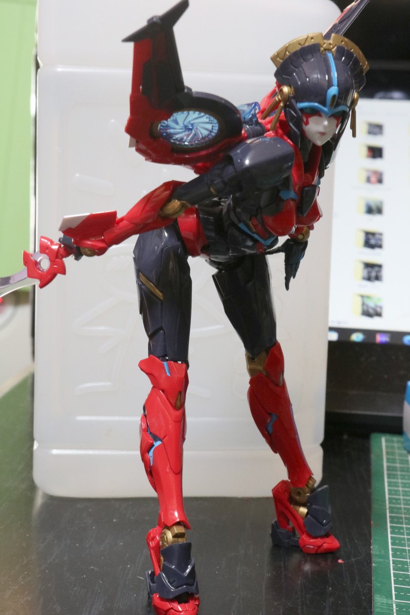 #風雷模型 の #トランスフォーマー プラモ、#ウインドブレード 組み上がりました。 作業し始めたら最後まで組みたくなっちゃって結局徹夜になってしまった… 金色ランナーおよびシール処理箇所の塗装と、ランナー状態で全体にクリアーを吹いたお手軽グロス仕上げです。