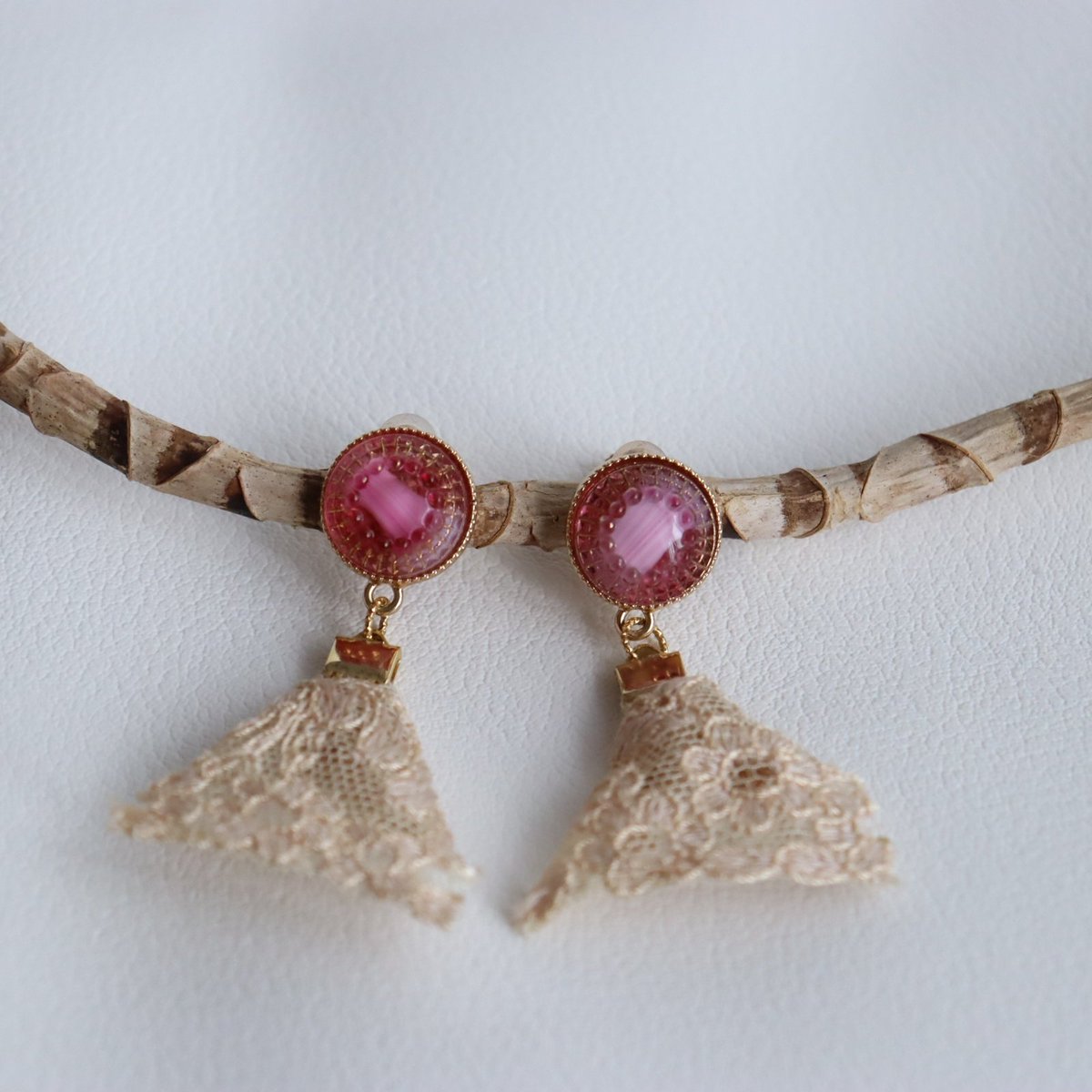 #あなたのぴんく色の作品を見せてください ピンク×アンティークレースのイヤリング