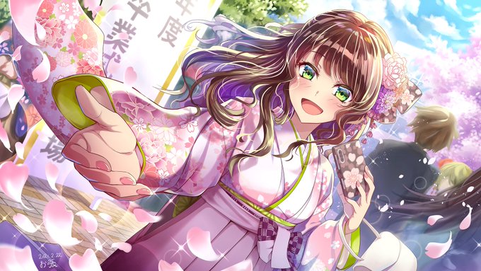 『最後に写真撮りましょう』 桜舞い散る卒業式。一緒に写真撮りましょうと差し伸ばされた君の手を取って...🌸 キャラクターも背景も精一杯力を入れて描き込みました。 どうぞよろしくお願いいたしますー!! #EIZOイラストコンテスト