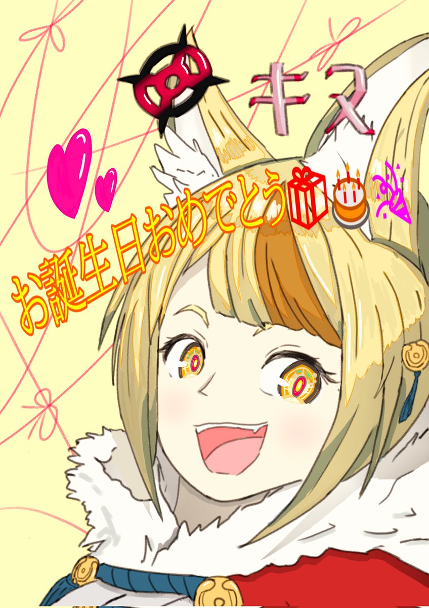 過去絵をちょっとブラッシュアップしてみました。間に合って良かった。 キヌちゃんお誕生日おめでとう🎁🎂🎉🎁🎂✨ #FEif #キヌ