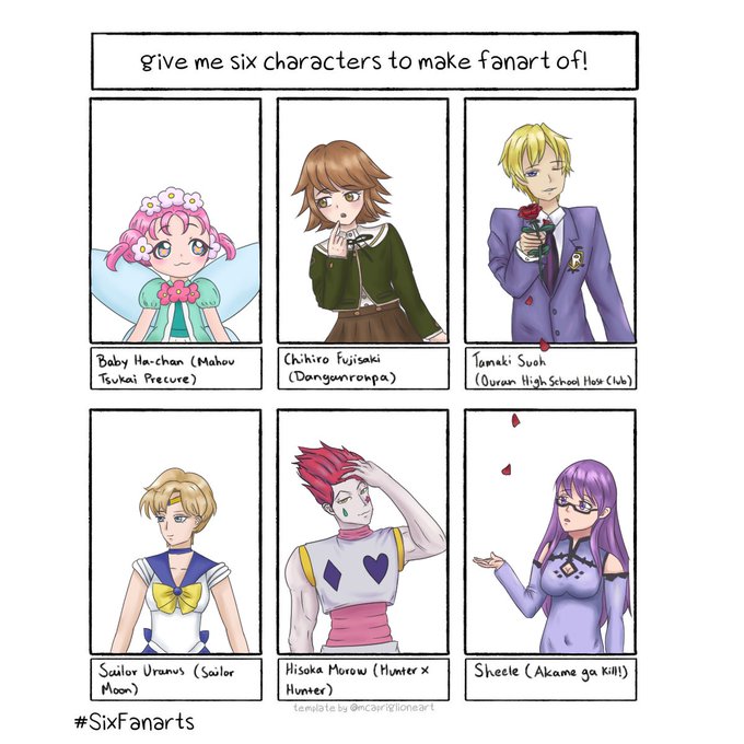 I'm so late to this, but I finally completed it! Thank you to those who suggested these characters! #SixFanarts #SixFanartsChallenge