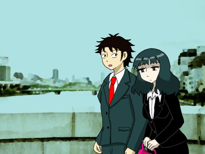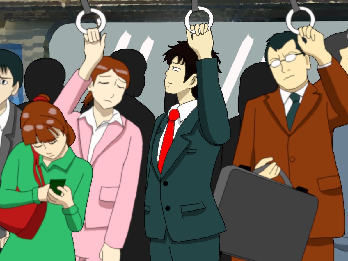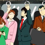 #アニメ #きのこパニック 満員電車に乗って通勤する佐井を描きました。