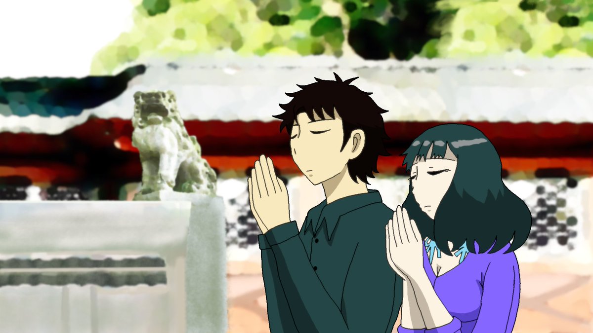 #きのこパニック #アニメ 神社に参拝する2人を描きました。