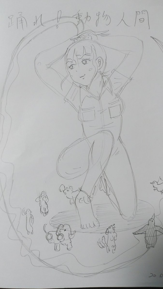 18 64 「踊る動物人間」インプレッション(閲覧数)、ついに10000頂きました。嬉しいので記念に描いた絵を載せます。 18/08/27 17:14