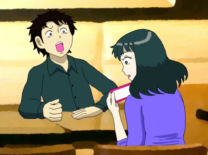 #きのこパニック #アニメ 喫茶店で注文を待つ2人を描きました。