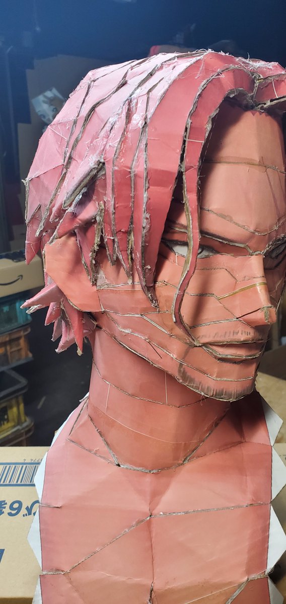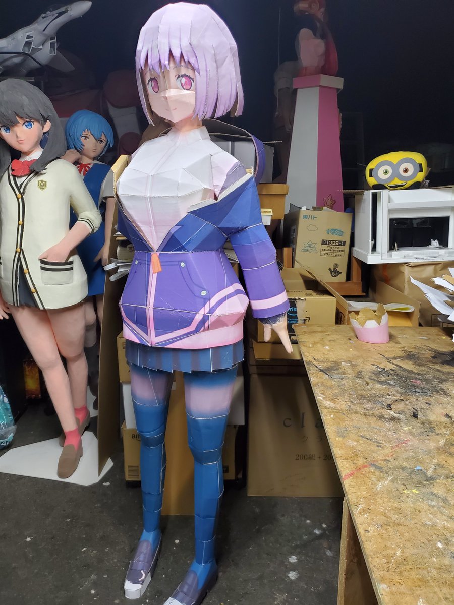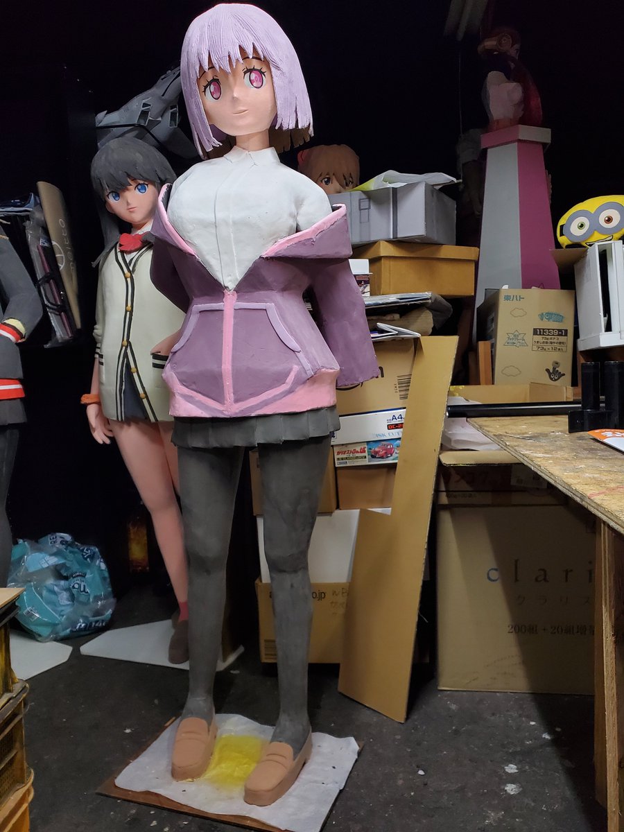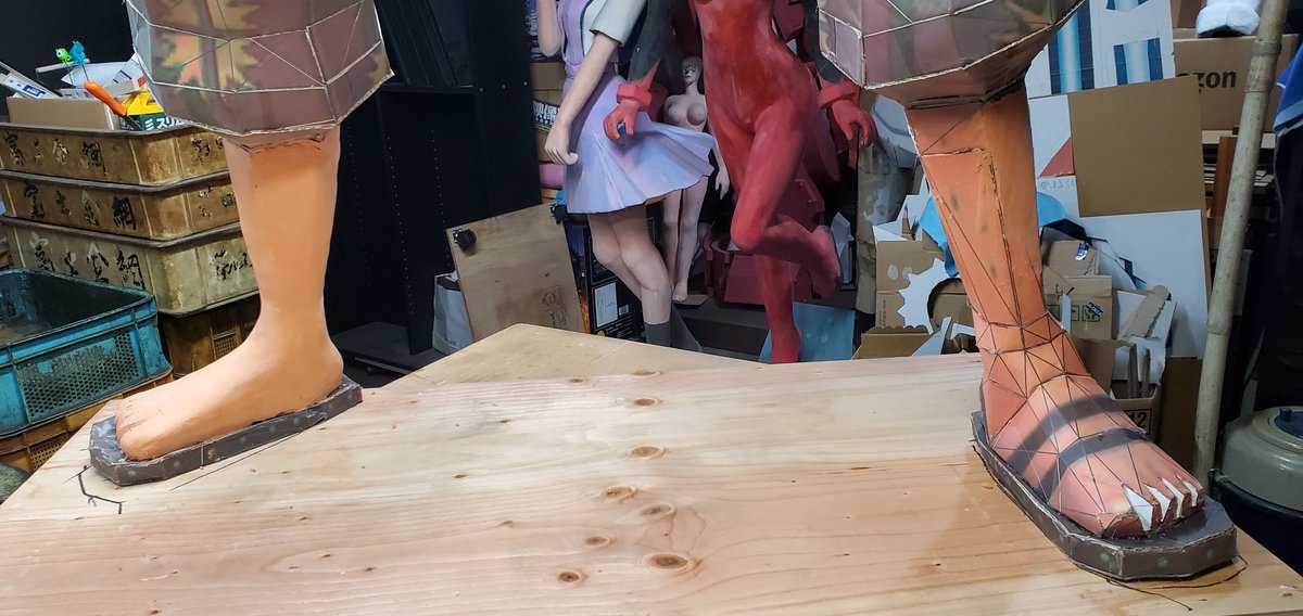 粘土盛り始めました。 いつもの通り、道具は指先と台所スポンジ。 お顔のサーモンピンクと足は黒タイツなので黒。 角を消していくように持っていくのがコツです。 片足で5箱。 #S.V #ペーパークラフト #グリッドマンユニバース #シネプラザサントムーン #等身大フィギュア #南夢芽