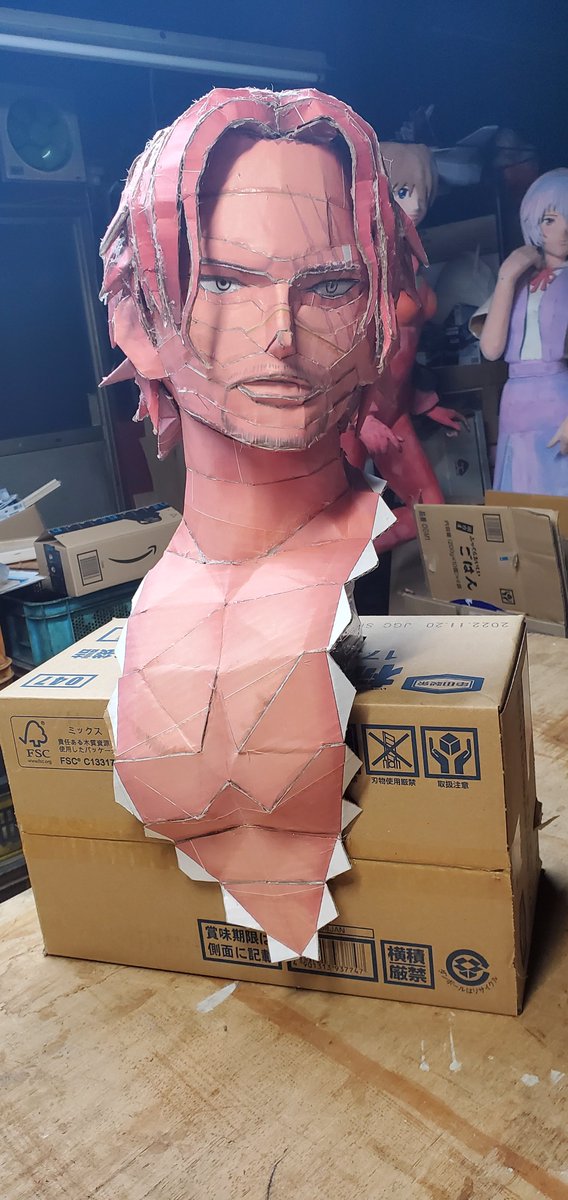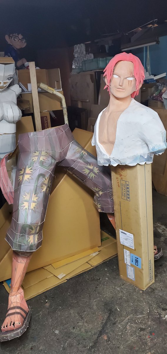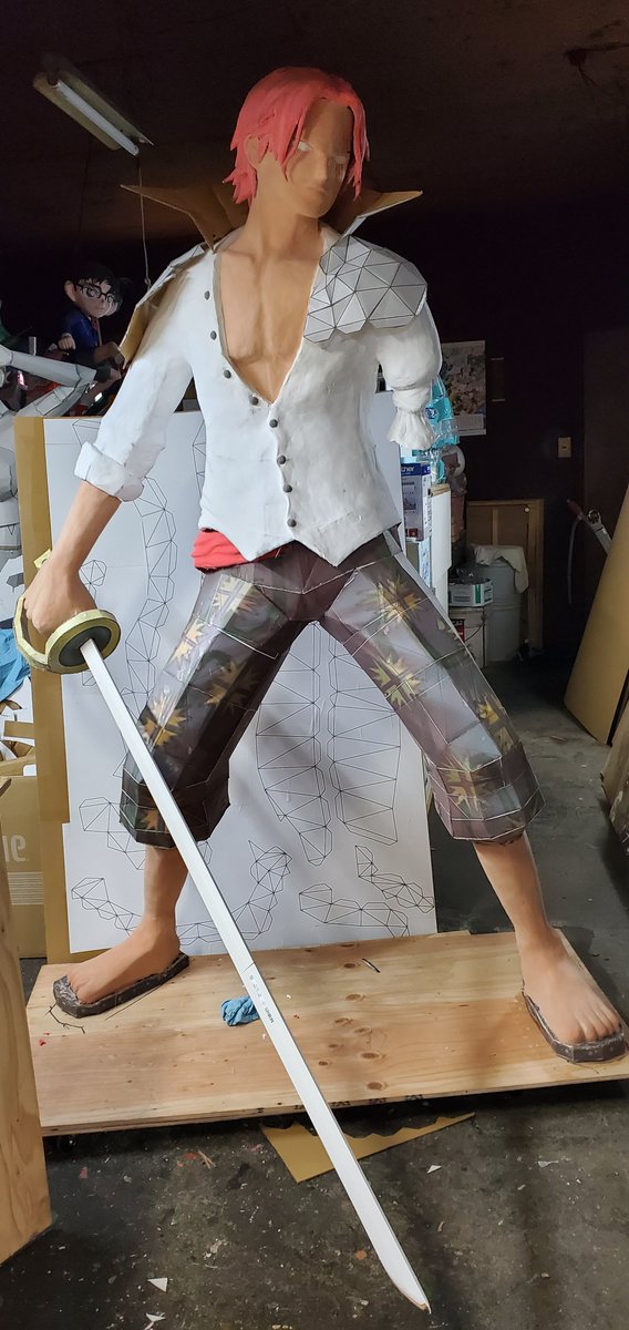 芝居の大道具作りや仕事が込み合いシャンクスの進行を断念。 ここまで出来てるのに😭 全てを平行で進めなければ間に合わず、それだと、映画が終わっちゃうし、ワンピ目当てのお客さんも少なくなるのでシャンクスの進行を諦めます。 #ワンピースフィルムレッド #ダンボールアート #ペーパークラフト
