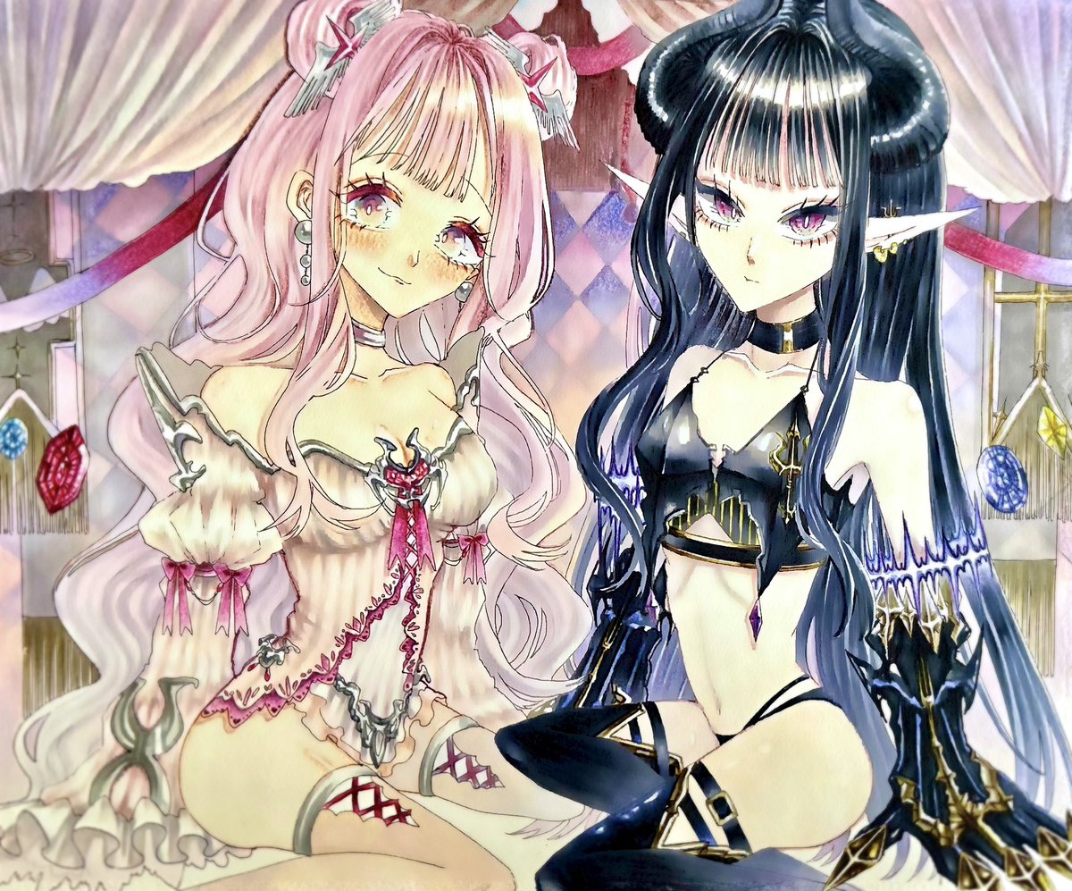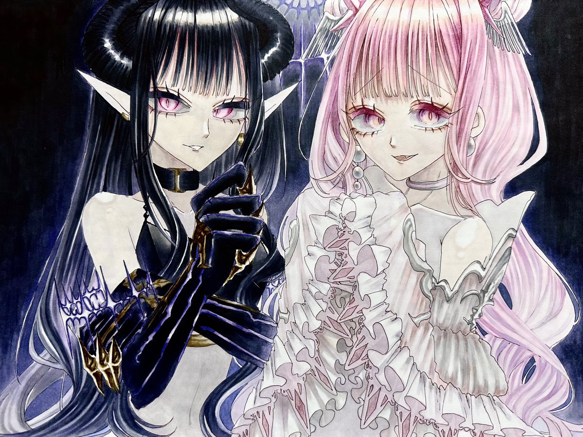 💖girl's🖤 #イラスト #コピック #IYN #天使と悪魔
