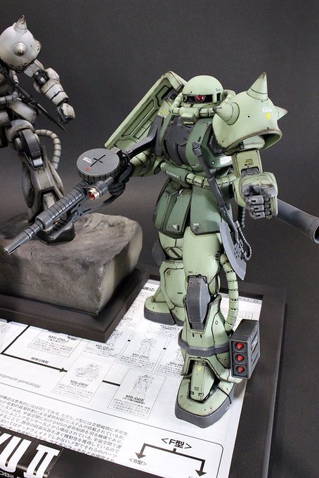 スペースで話題に上がりましたので😇 成形色活かして ドライブラシのみで仕上げたザクです #gunpla