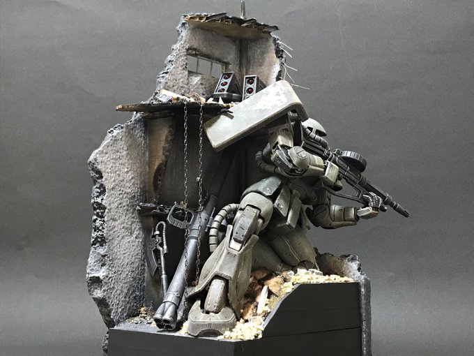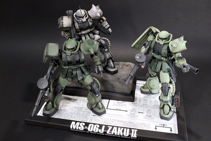 #ガンプラ汚し展覧会 過去作ですが🙇♂️ 成形色仕上げと 全塗装仕上げと 鋳造を撃ってからのドライブラシでの全塗装仕上げになります