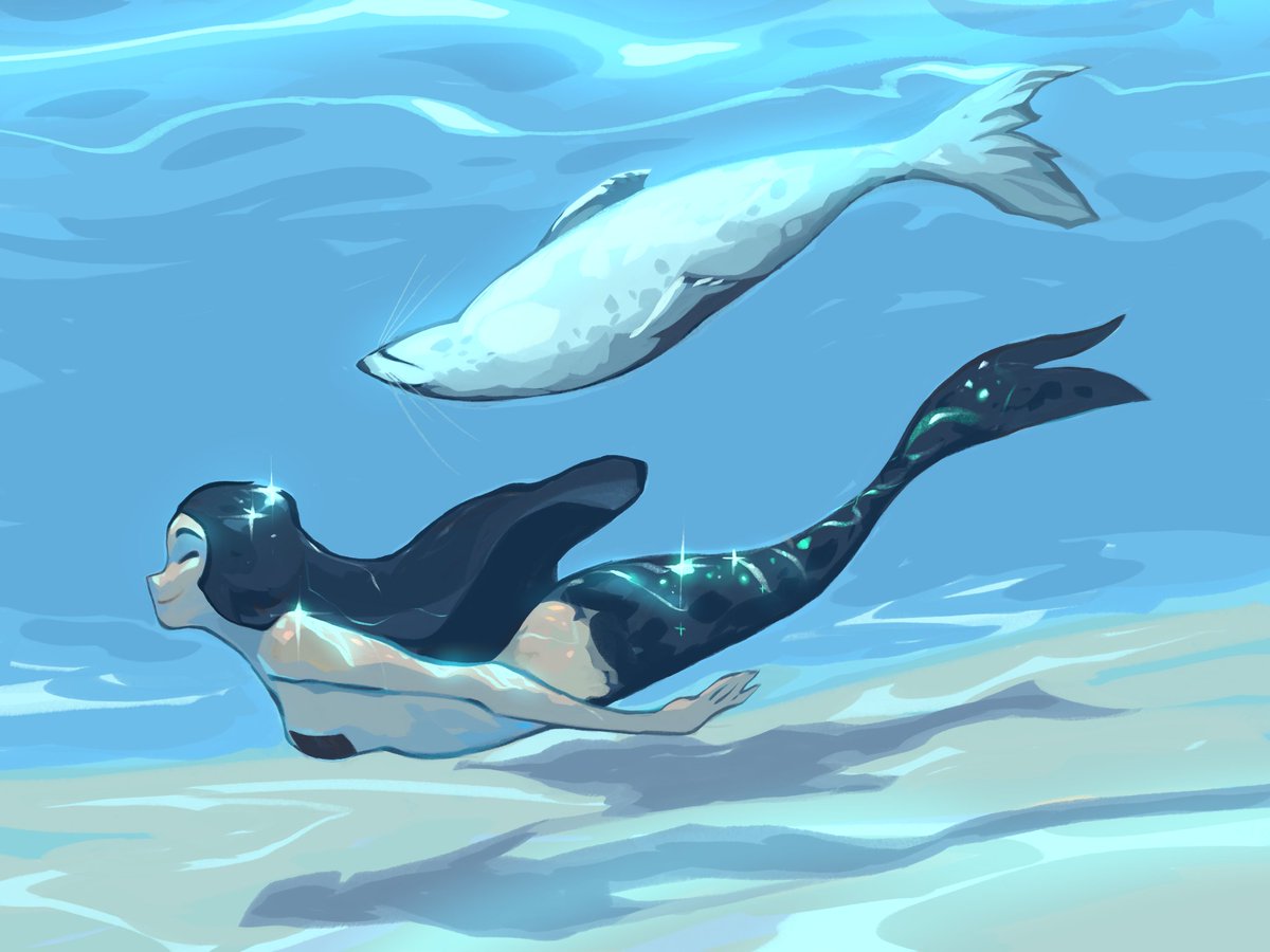 daily swim with a seawoofer🌊 #mermay #mermaid #fantasyart #ArtistOnTwitter #mermaidart #characterdesign #characterart
