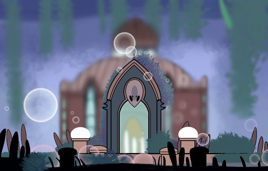 "Holloween" Day 22: Acid "A green landscape formed through a dream, their inhabitants worshiping, and waiting for her call, lying on the depths of a acid lake, she lays dormant..." #HollowKnight #holloween #hollowknightfanart #inktober2020 #inktober2020day22