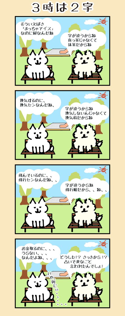 1 5 ねこみたいないぬ 四コマ漫画 「3時は2字」 #ねこみたいないぬ #いぬ #ねこ #四コマ漫画 #漫画が読めるハッシュタグ #漫画がよめるハッシュタグ #四コマ #会話 #アイス #飛行船 #換気扇 #仲良し 21/06/19 19:04