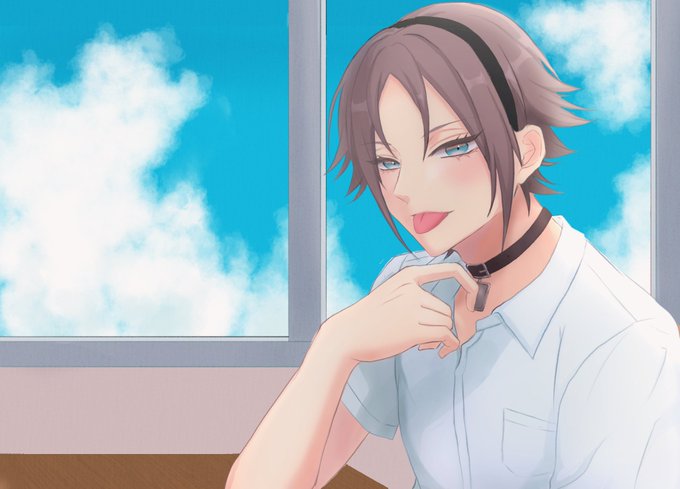 #MystArt ⚠️学パロ ⚠️捏造制服 授業中に目が合うとべーってしてくる同じクラスのMystaくん Mysta in the same class who stick out his tongue when eyes meet during class. How cute. I am sorry if I used wrong English.