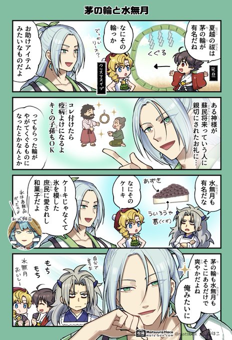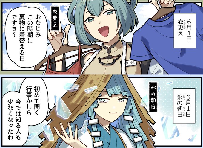🖌2023年6月の #今月描いた絵を晒そう 衣更え/氷の朔日/時の記念日/入梅/夏至/夏越の祓、の擬人化4コマでした! (描きたかった父の日と嘉祥はまたどこかで…!) #拝啓暦の上から のタグで読めます📖
