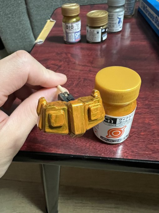おはようございます☀ ゆっくりとガンダムに筆塗り中🖌 ヴィクトリーとフィッシャーズの青金使ってみました😊 ヴィクトリー黄色っぽくてフィッシャーズは粘りが凄かい 好み的にはフィッシャーズかなぁ☺️ #ガンプラ好きと繋がりたい #ガンプラの画像貼るとRTされると聞いて #フィッシャーズ