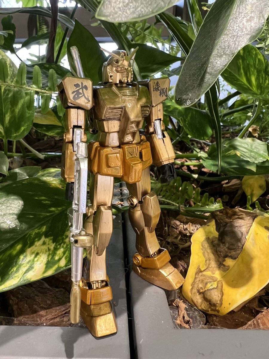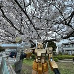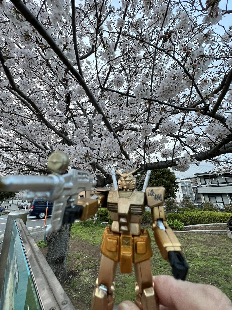 おはようございます☀ この前仕上げたガンダム(ゴールド塗り)を桜バックに撮影してみました🌸 スマホカメラだとフォーカスが当てにくくて難しいですね😅 #ガンプラの画像を貼るとRTされると聞いて #ガンプラ好きと繋がりたい #桜
