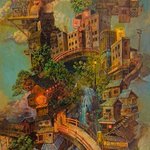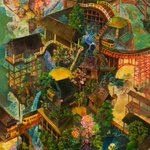 15 78 #これを見た人はアオリ絵を貼る見た人もやる #これを見た人は俯瞰絵を貼る見た人もやる 「滝降り街」アオリと俯瞰両方ある多視点の絵です😉GalleryTK2さんに展示して頂いてます。 20/06/26 16:03