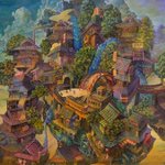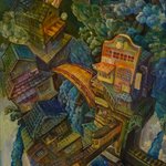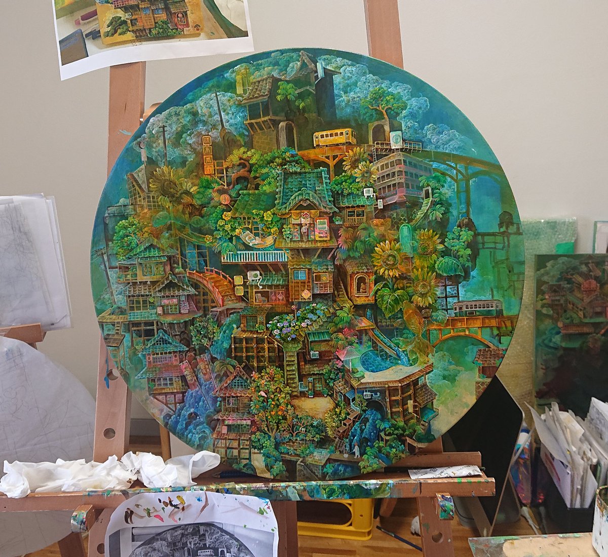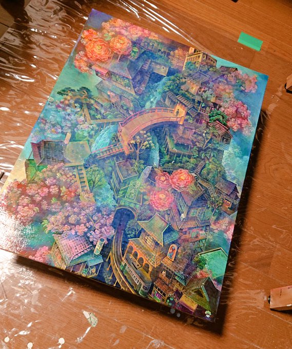 @akikokasai_art さんより繋いで頂きました(^_^ゞ P30の絵が描きあがりました。日々積み重なる街を描いてます。 #絵描き繋がれ