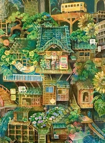23 76 @akikokasai_art さんより繋いで頂きました(^_^ゞ P30の絵が描きあがりました。日々積み重なる街を描いてます。 #絵描き繋がれ 20/04/14 19:45