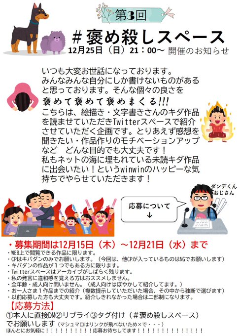 36 79 【⠀褒め殺しスペース第3回 】 ゆるくやります✊最近キダハマった方も、初めましての方も、顔見知りの方も大歓迎です………! 過去の様子はタグよりご覧下さい⬇️ #褒め殺しスペース 22/12/15 13:53