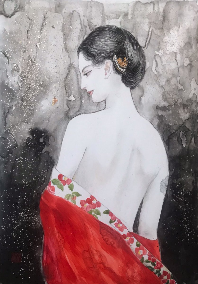 花の降る門 F10 キャンバス ギャラリーブラウカッツェさんの10GO10INTRODUCTION2022参加作品です。5/22〜5/29まで #galleryblaukatze #アクリル画 #10GO10