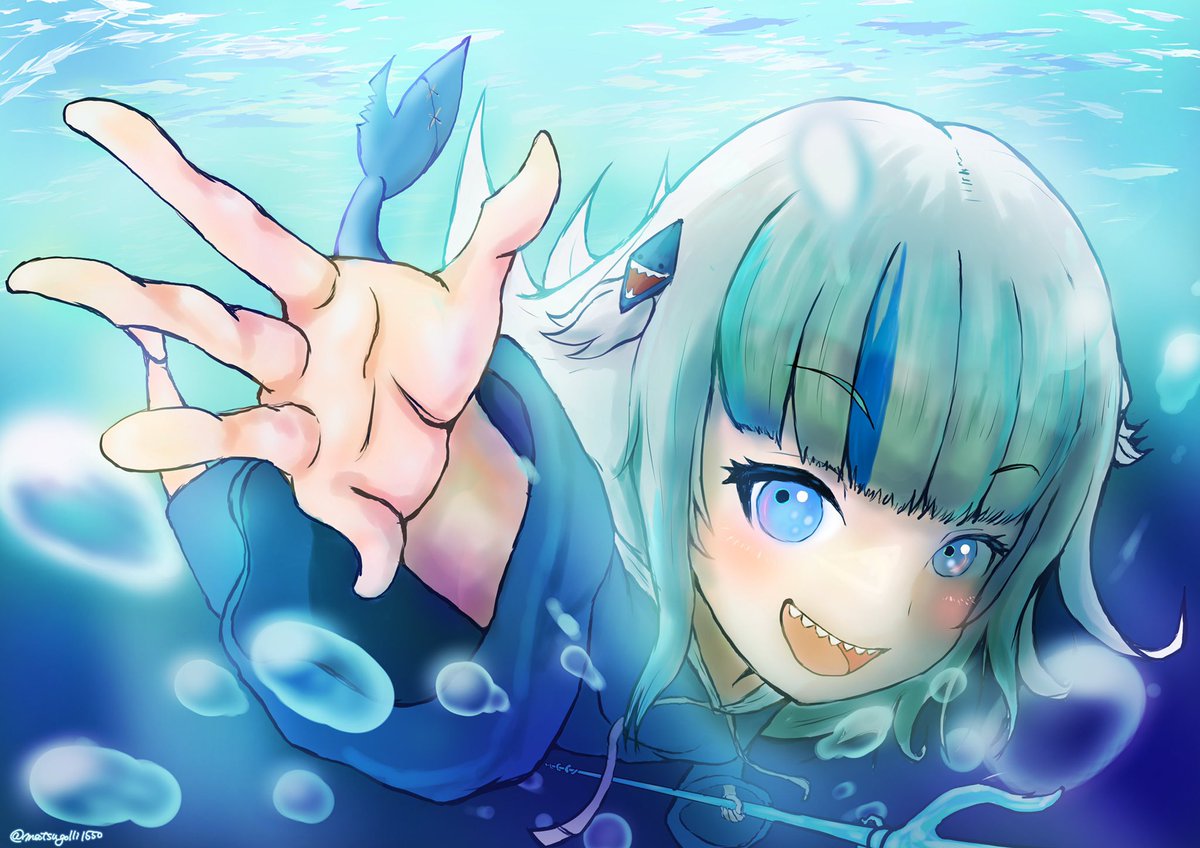 前描いてたぐらちゃん少し描きなおした もっとキラキラ明るくしたい #gawrt