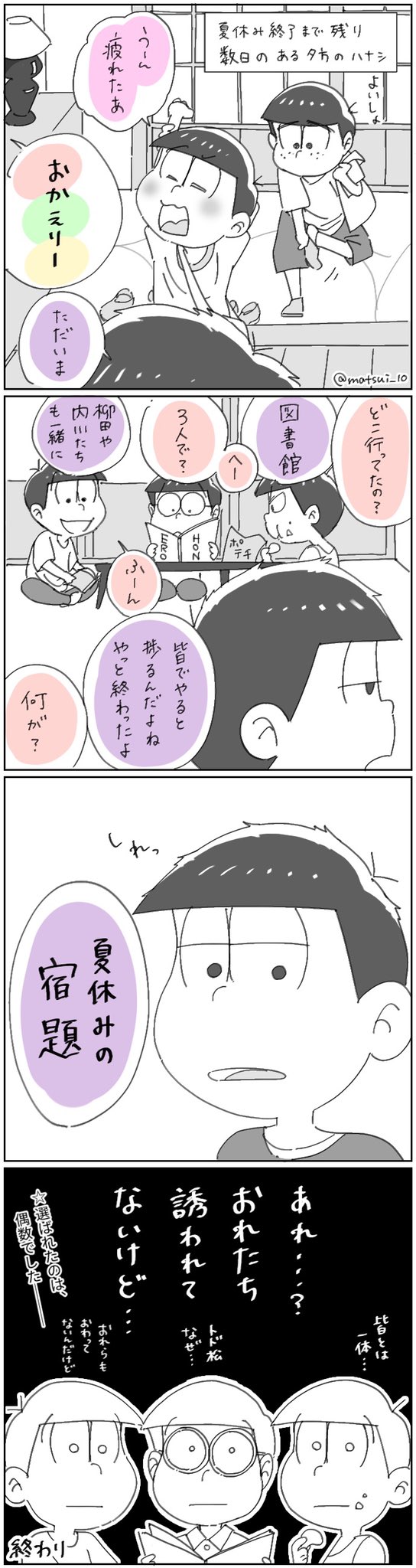 34 208 四コマ漫画で18松の夏休みネタ🏖 選ばれたのは、偶数でした 22/08/30 18:53