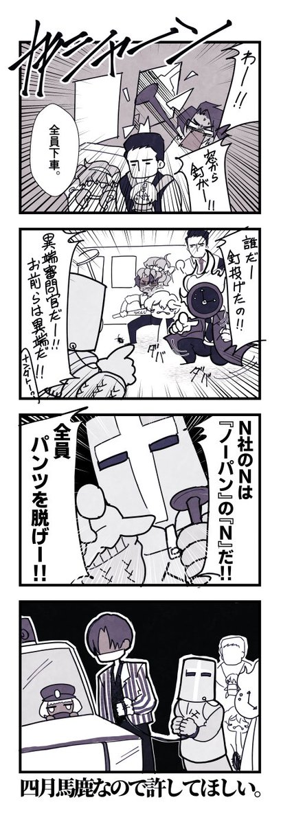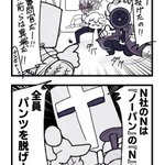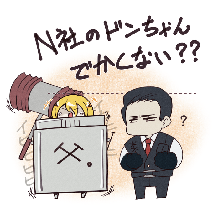 これは、「N社のドンちゃんがこれだけでかかったら、N社で集合写真を撮ったら、シンクレアはこうなってしまうのでは?」と思って描いたやつです。 twitter.com/matsuki_tohco/…