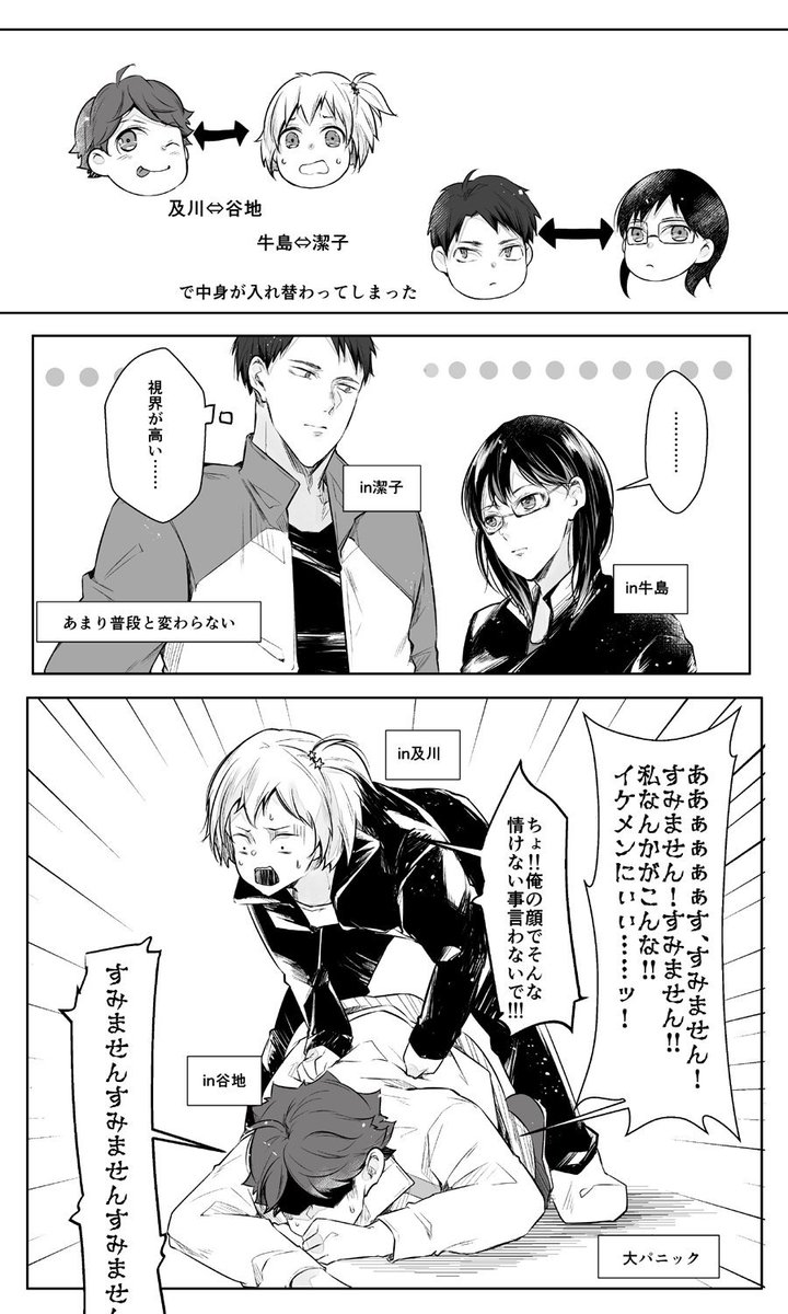 「及川さん⇔谷地ちゃん」、「牛島くん⇔潔子さん」で中身が入れ替わっちゃった❗️って夢見ました😳
