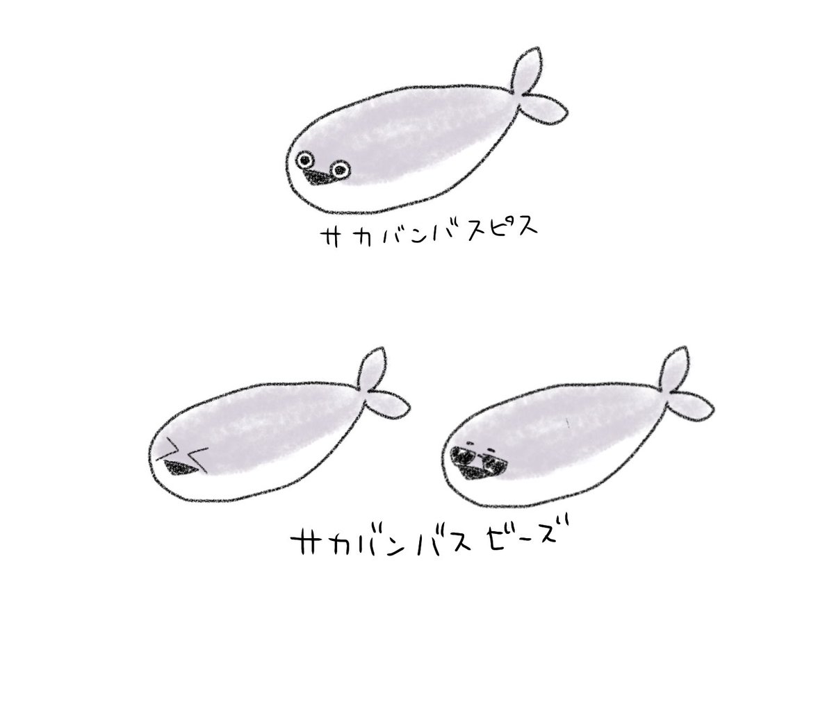 転売とかで心痛めたフォロワーさんを散見するので 私が描いた最近話題のサカバンバスピスとサカバンバスビーズ見て
