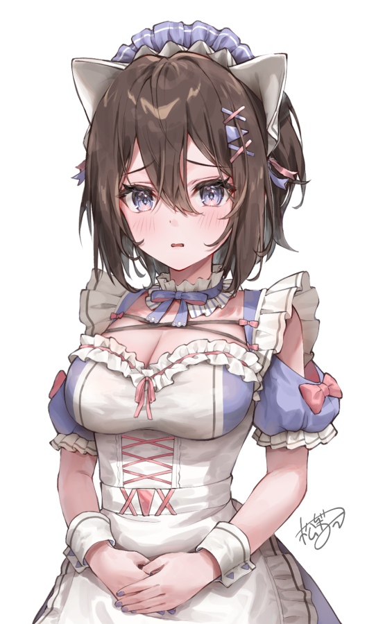 「cat maid」シリーズ⑤ 内気なドジっ子メイドちゃん 目の描き方とか塗りを試行錯誤してたら紫のメイドちゃんの顔だいぶ変わった #オリジナルイラスト