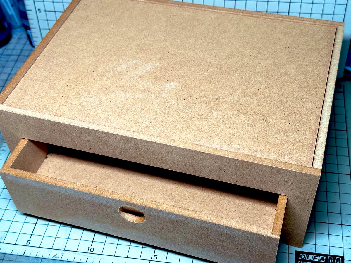 MDF製の作業台組み立てキットを作ってます。ご入用の方はDMでご連絡下さい。組み立てには木工ボンドでの接着が必要になります。サイズはA4、A5、A6で高さは全て9cm。サイズ変更も出来ますので気になる方はDMにて御相談ください。 #まつおーじ台