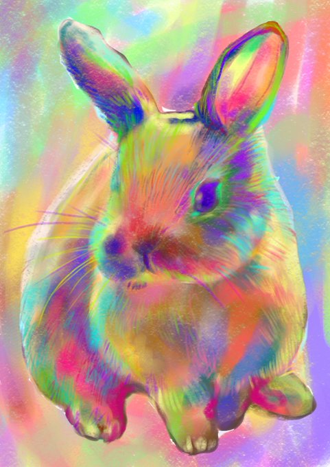 1 40 ジメジメ暑い季節はカラフルな色づかいをしたくなるのは私だけ? カラフルうさぎちゃんのイラストです(*^^*)はやく晴れろー #イラスト #イラスト好きな人と繋がりたい #ペットのイラスト #動物のイラスト #カラフル #うさぎ #絵を描く人 22/06/22 11:46