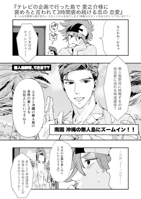 深夜の忠愛ワンドロ&ワンライさまのお祭りに参加させていただきます〜! またただラブ開催おめでとうございます! 楽しいお祭りのたくさん参加させていただけて、とても幸せです〜!! 2人っきりで無人島での「特別な夜」のダンス「パーティー」! #ただラブ #忠愛ワンドロワンライ