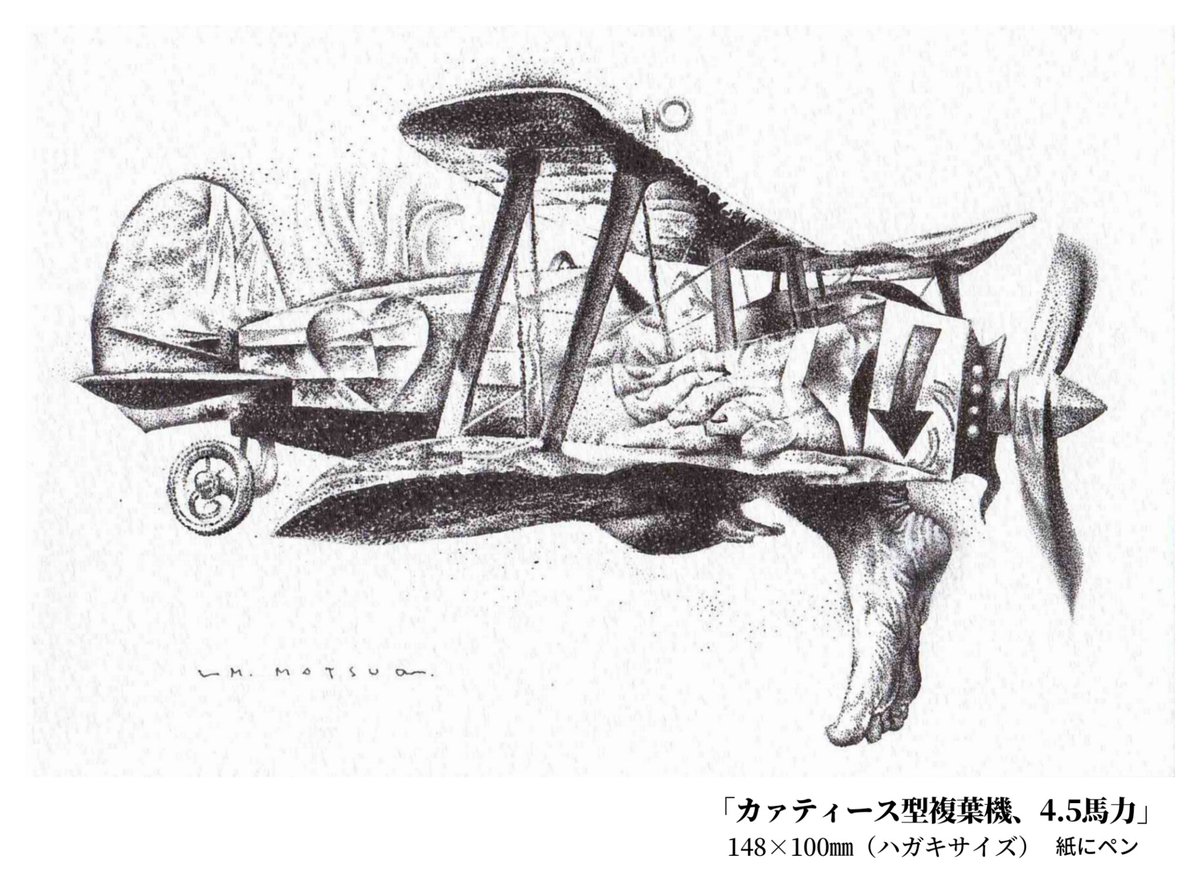 筆ペンや、ミリペンの点描で描きました。ヒコーキは子供の頃から好きで、かといって絵には描いていませんでしたが、シリーズとして描いても面白いカモ。これはセントーキのつもりで描きました。#ペン画 #点描画