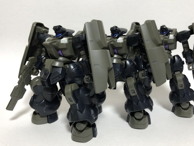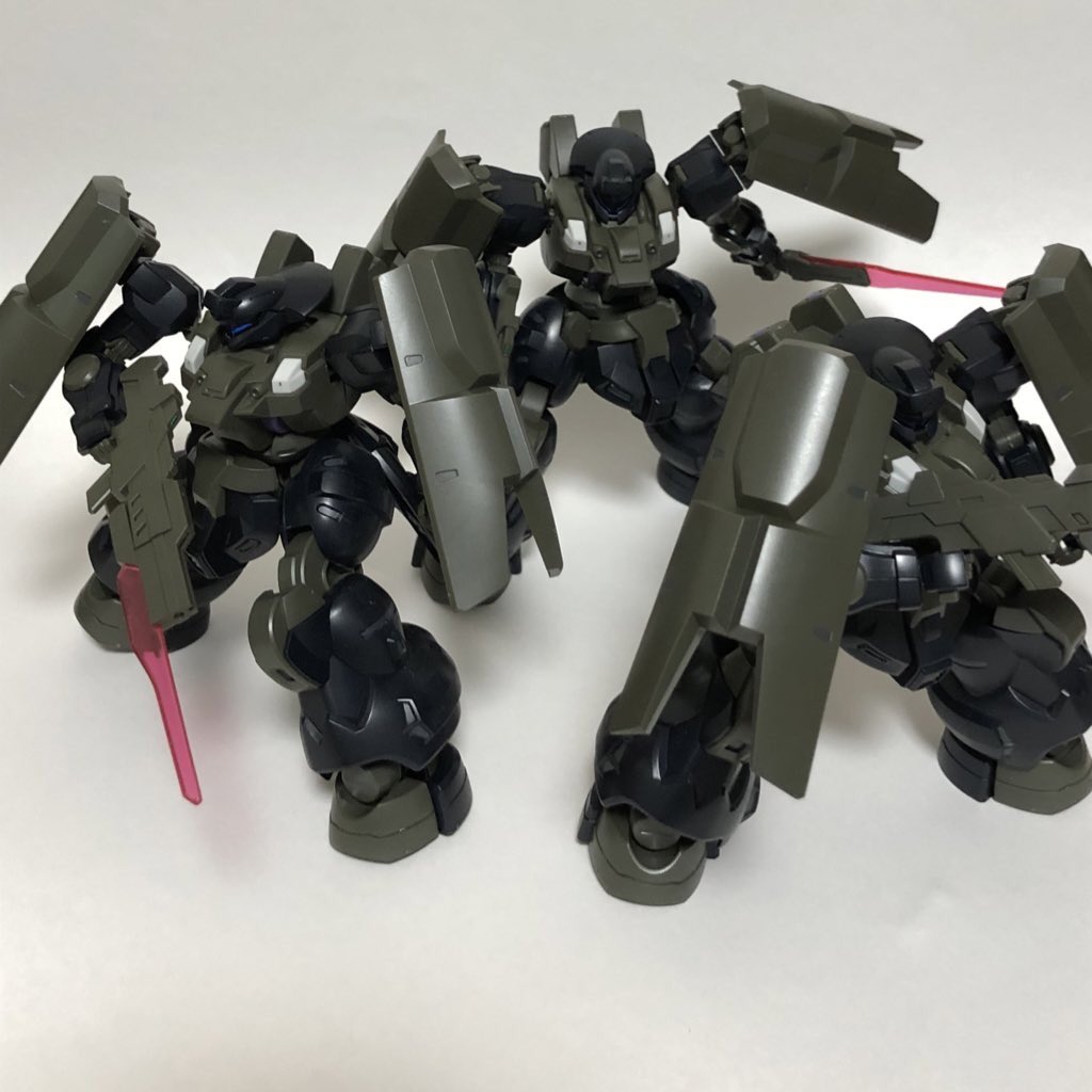 #水星の魔女 #ガンプラ HGディランザ・ソル×3 完成しました。 一番好きな機体かつ量産機なので3機買って小隊組んでみました! 塗装はエアブラシが使えない都合上、筆塗り部分塗装とトップコートの簡単フィニッシュとなります。それでも最近のガンプラは十分なクオリティですね。