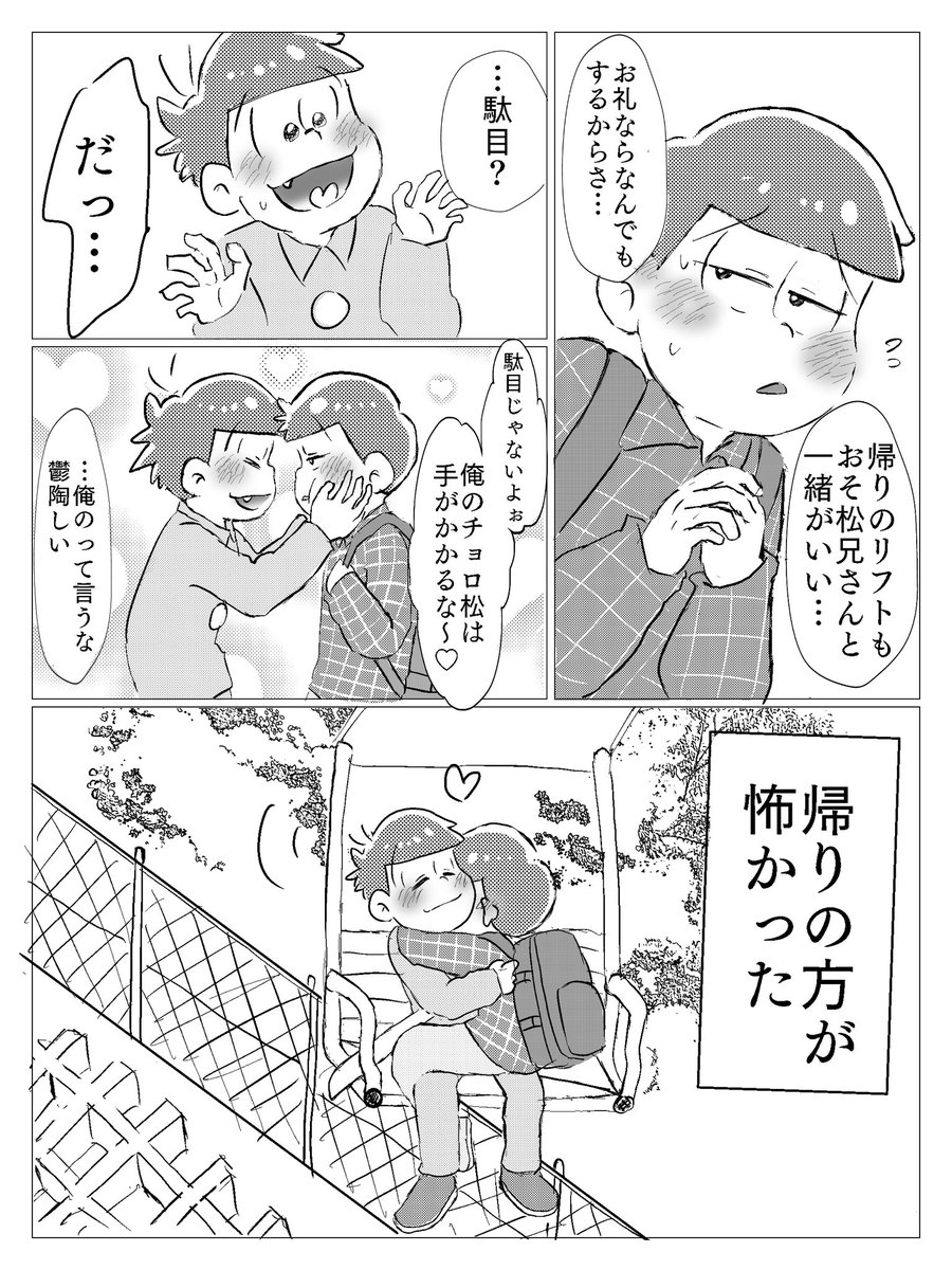 12月のおそチョロの日おめでとうございます!!おそチョロカラー溢れるよき季節ですね❤💚そんなクリスマスとは関係ない、13番煎じくらいされてる抱かせろおそチョロ漫画です このあとめちゃくちゃセッ●します #毎月13日はおそチョロの日