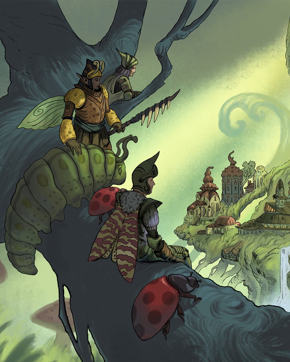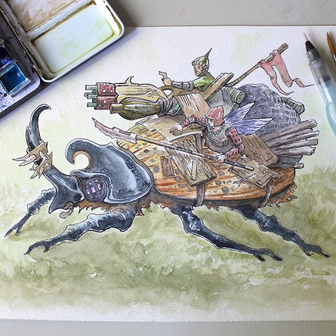 Battle Beetles. One of the many ways the Pixens defend their amazing Philodendron Fort! #fantasyart #fairytales #dndart