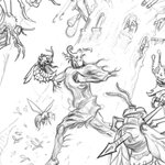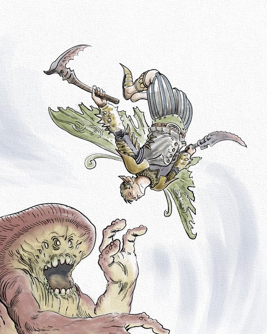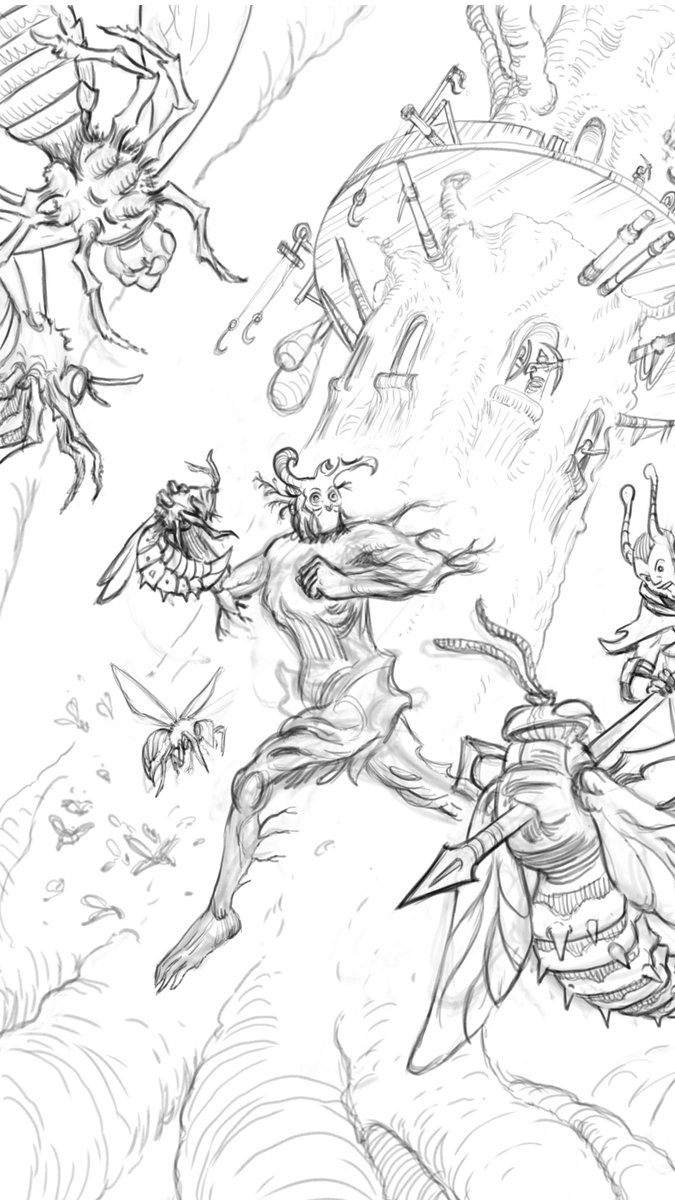 Work in progress of this crowded battle scene. These are some brave Pixens battling angry wasps! #fantasyart #dndart #dndcharacter