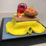 🐙💬 こたつぬくぬく〜〜♪ みかんも美味しいなぁ…🍊✨ 🐸💬 ケロッ! #まっタコ #こたつ #フィギュア #フィギュア撮影友の会 #手作り #粘土細工 #可愛い #作品をみてくださいあわよくばフォローしてください祭