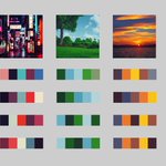 Just published the code for my NodeJS palette generator tool with Stable Diffusion: → gist.github.com/mattdesl/31403… Below: comparing different color quantization modules for palette extraction.