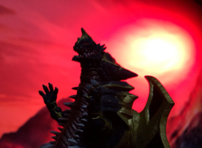 夕焼けに吠えるキングオブモンス #かいじゅうのすみか #オモ写