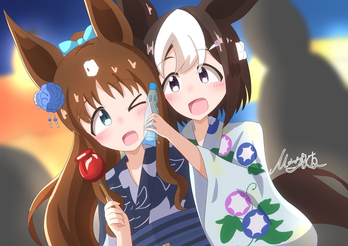 浴衣グラスぺ(過去絵 #ウマ娘 #ウマ娘プリティーダービー #グラスワンダー #スペシャルウィーク
