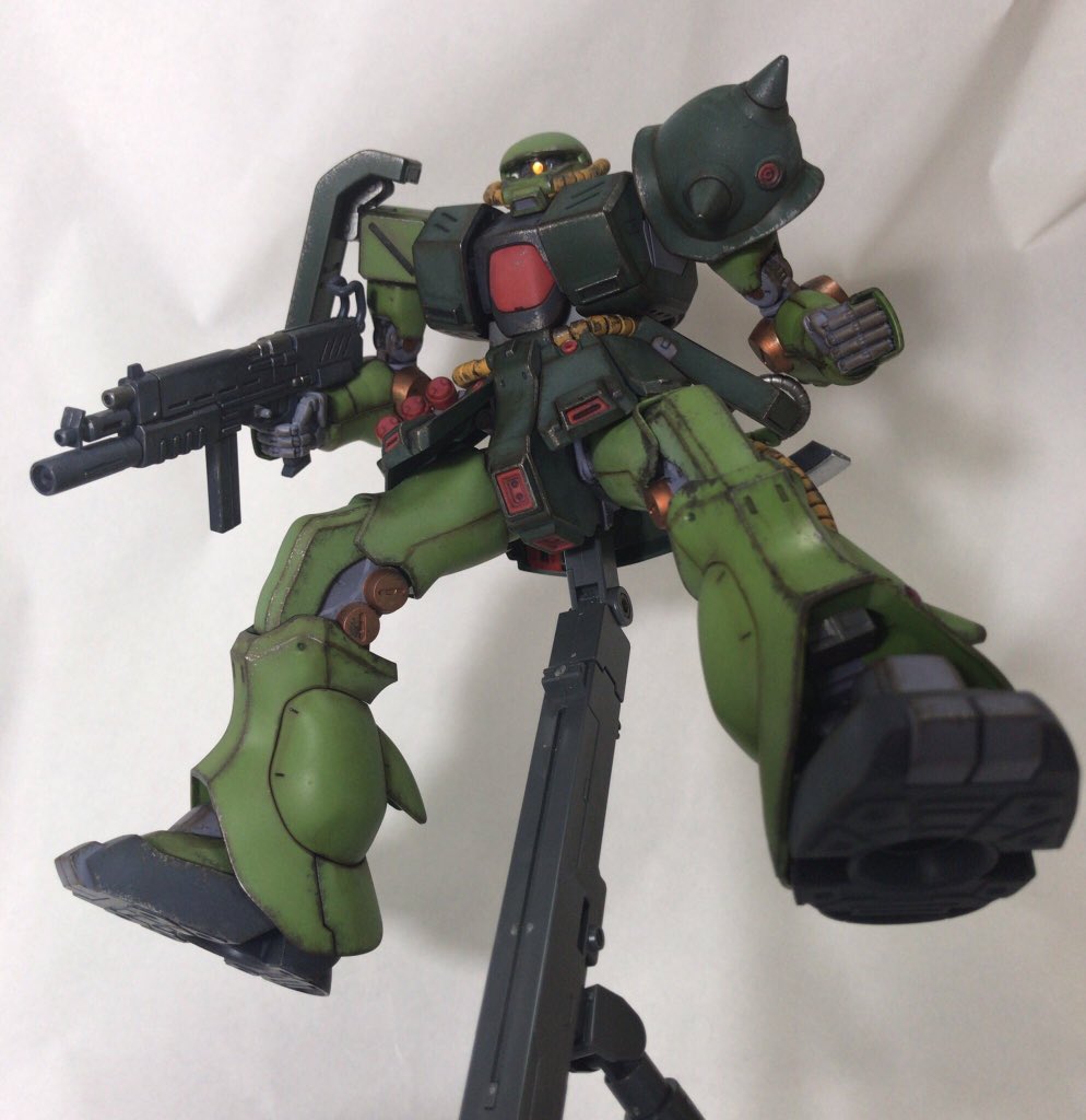 本日3作仕上げられました^_^ HGUCザクマリナー完成です。 赤と焼鉄色部分を部分塗装した以外は成形色汚しなので汚い合わせ目消しが見えてます(^^; がっしりしてて予想以上にカッコよくなりました^ - ^ #ガンプラ